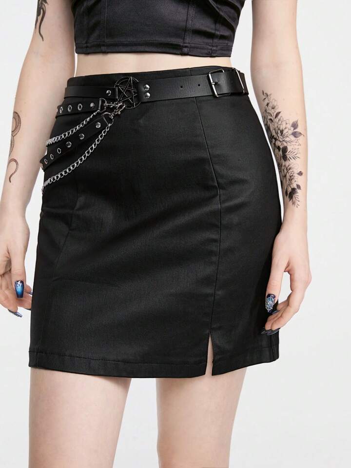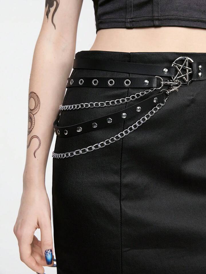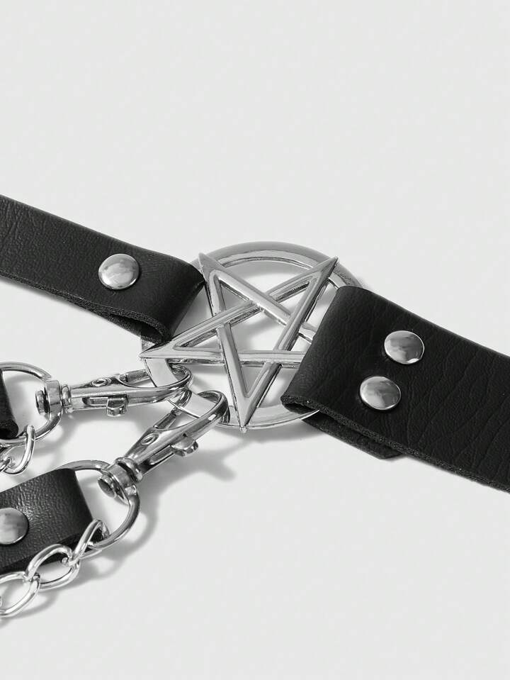 Goth 1 pezzo Cintura nera con design a pentagramma e tacchi vuoti per donne, adatta per l\"indossamento quotidiano e lo stile punk con catena