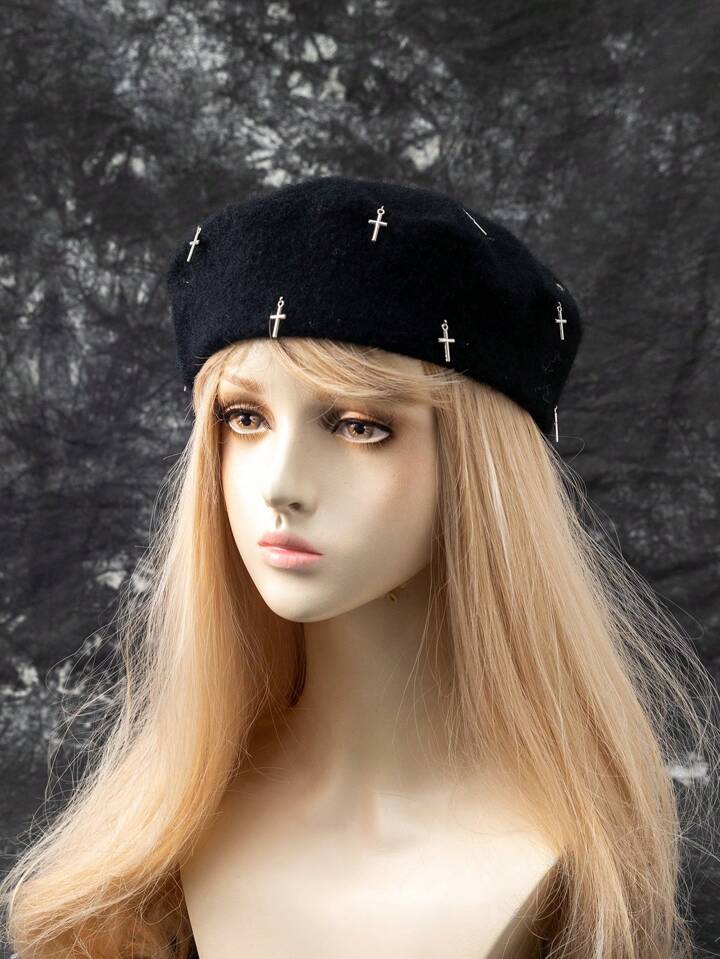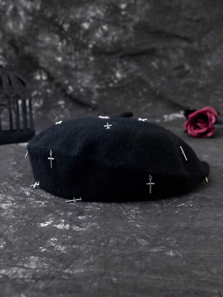 Goth Donna 1 pezzo Cappello francese punk con decorazione croce