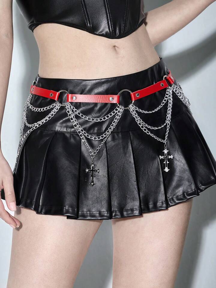 Goth 1 pezzo Cintura decorativa stile punk rock da donna con 4 strati di catena a croce, adatta per abiti casual quotidiani, colore rosso