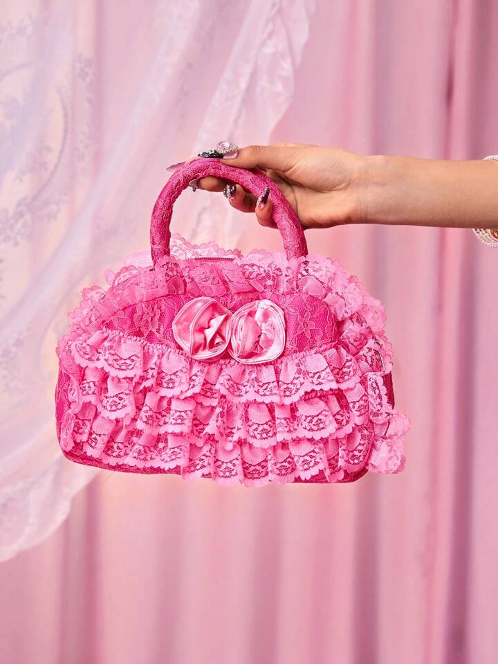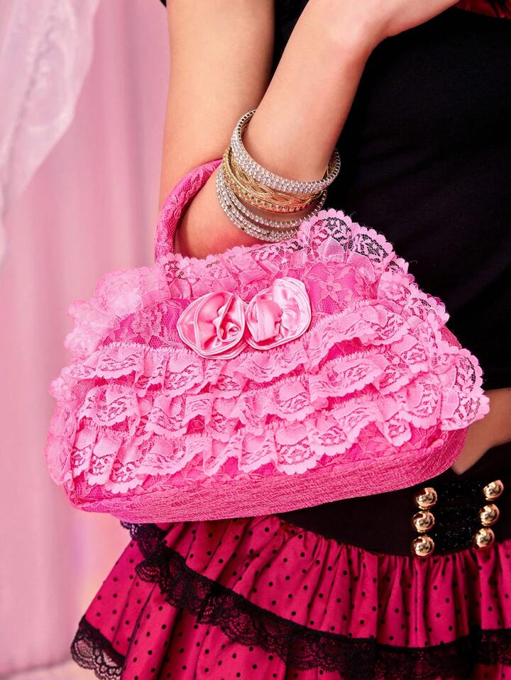 Goth 1 pezzo Borsa da donna in pizzo con motivo floreale, elegante per feste e occasioni speciali