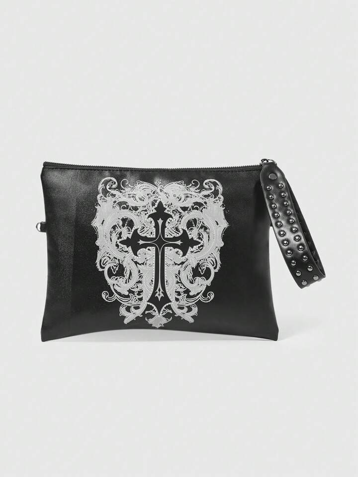 Goth 1 pezzo Borsa a frizione da donna con stampa a cuore e croce con decorazioni in rivetti