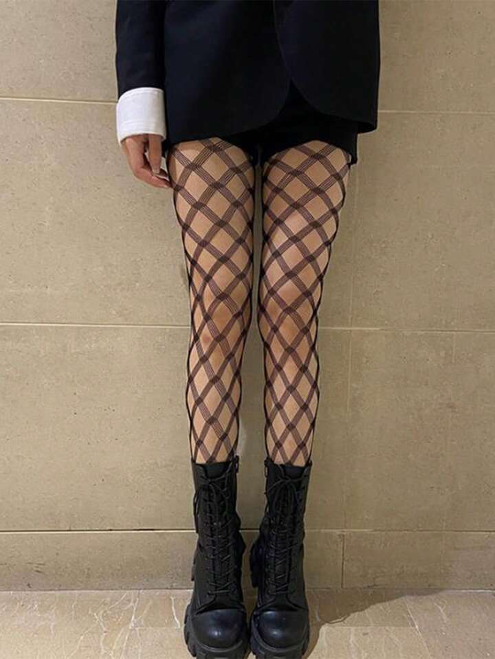 Goth 1 Pezzo Calze A Righe Con Quadri Per Donne
