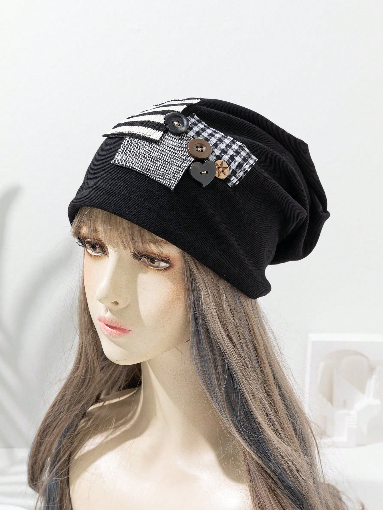 Goth 1 pezzo da donna Y2K bottone & a forma di cuore patchwork Berretto in maglia streetwear Cappello hip-hop