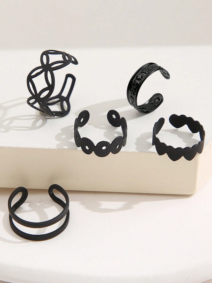 Goth 1 Set/5 Pezzi Anelli Neri In Geometria Vuoti