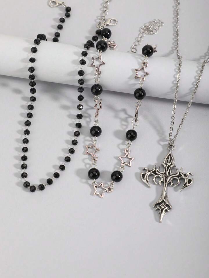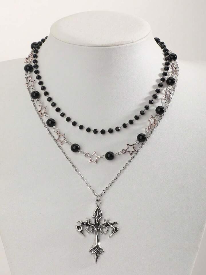Goth 2 pezzi Collana con pendente a stella stile vintage punk con strass, collana a catena a doppio strato con stelle luccicanti di lusso, choker da streetwear