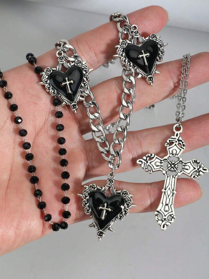Goth 2 pezzi Collana con pendente a stella stile vintage punk con strass, collana a catena a doppio strato con stelle luccicanti di lusso, choker da streetwear