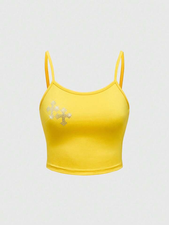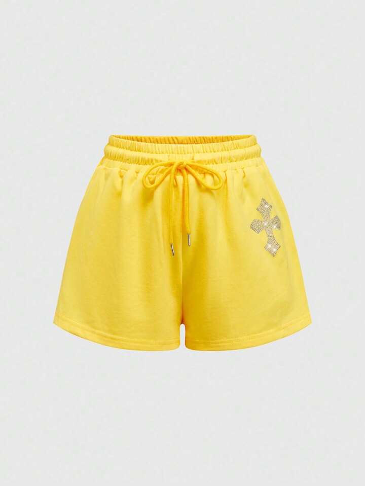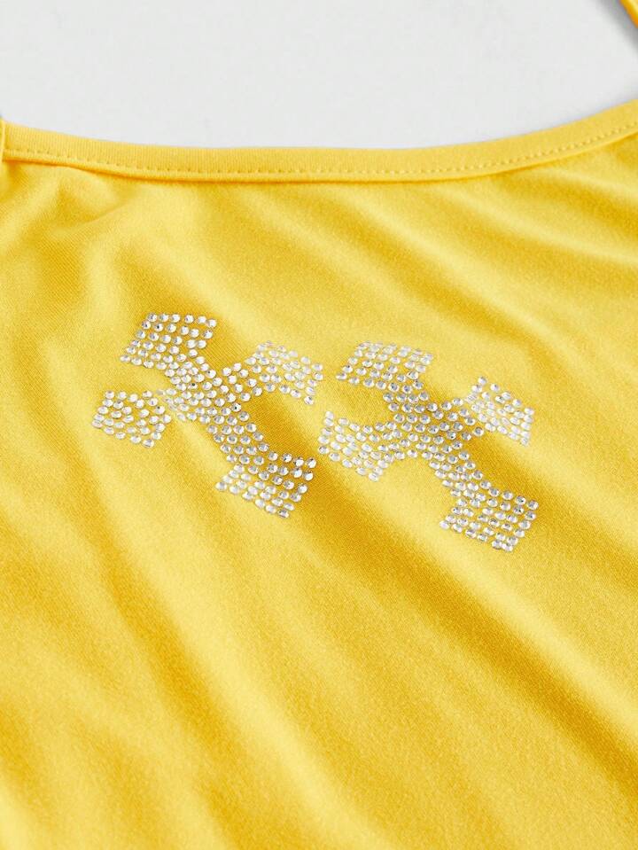 Goth 2 pezzi Set di canottiera e pantaloncini elastici incrociati in maglia versatile e adatti a ogni occasione con strass per donne