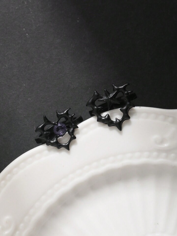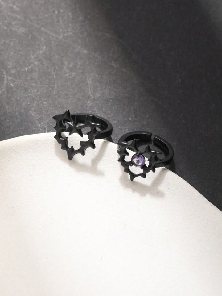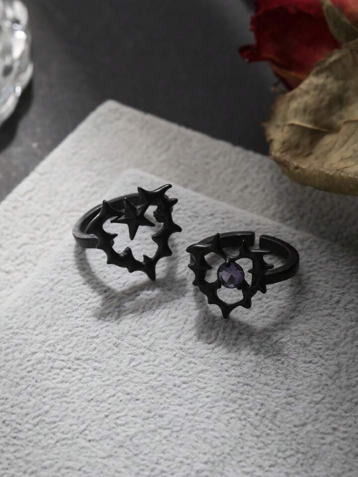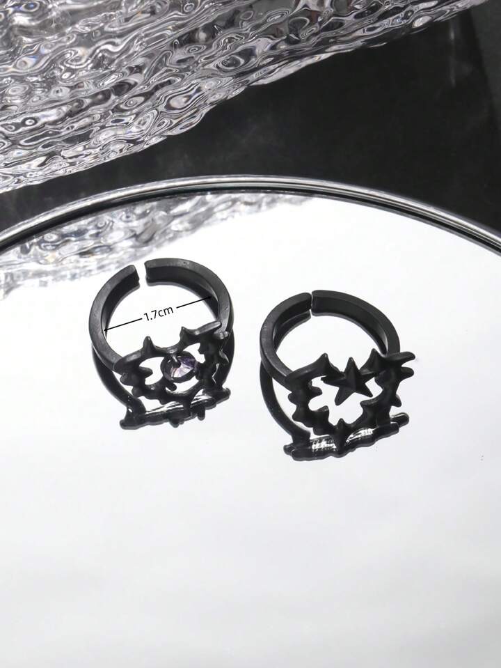 Goth 2 Pezzi/set Anello Aperto Regolabile A Forma Di Cuore Nero Hop Hop Punk Stile Con Decori A Forma Di Stella Con Strass