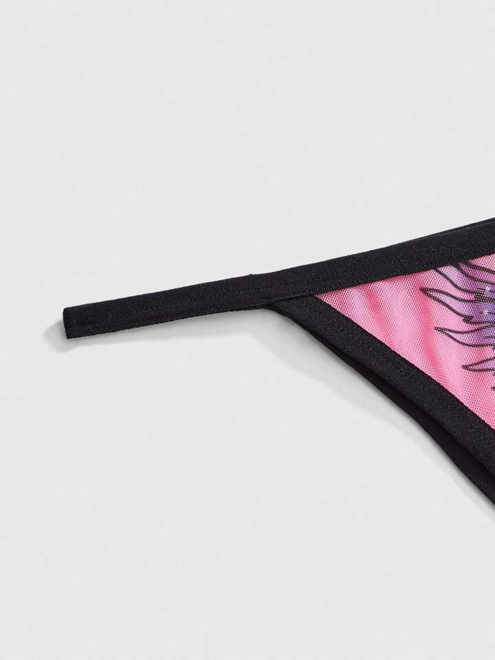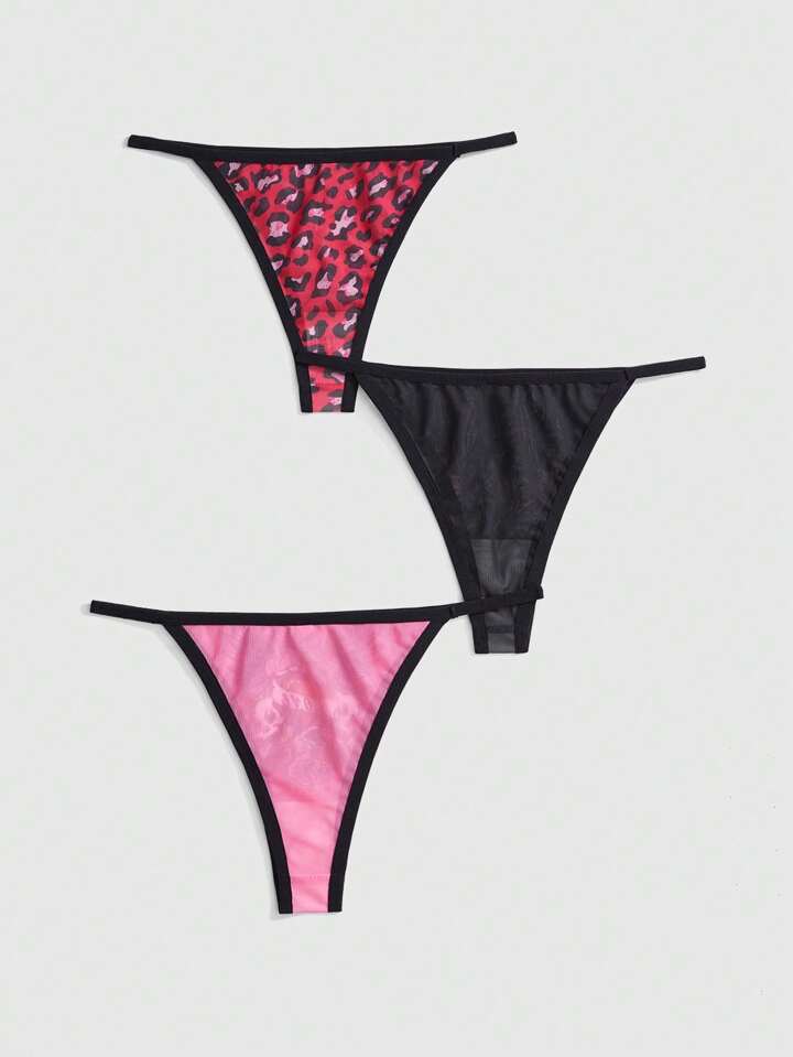 Goth Set di 3 mutandine da donna con motivi retrò a fiori, teschi con ali e cuori