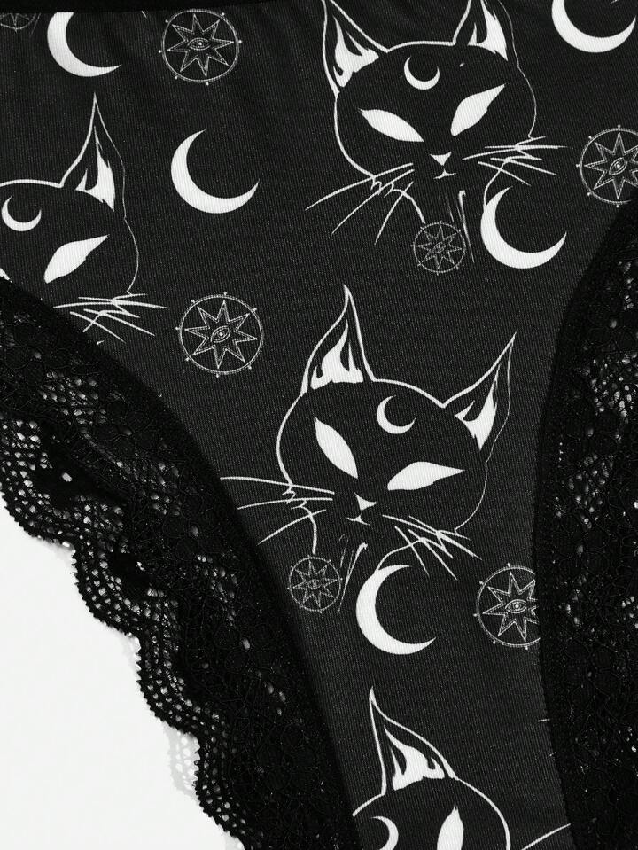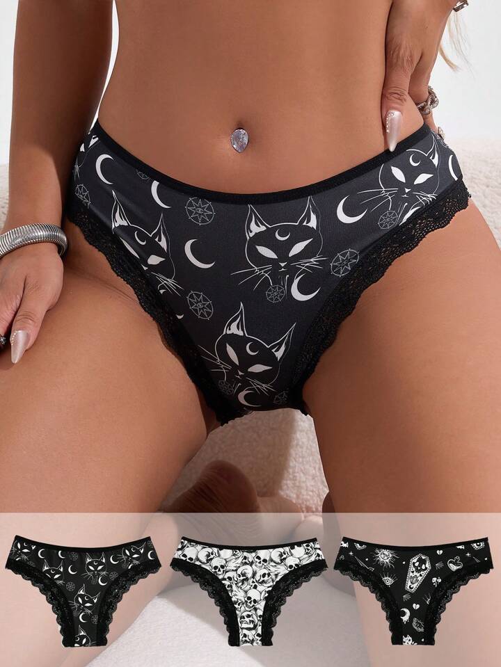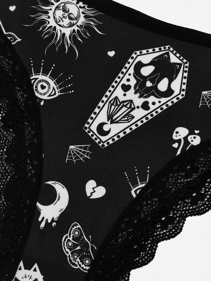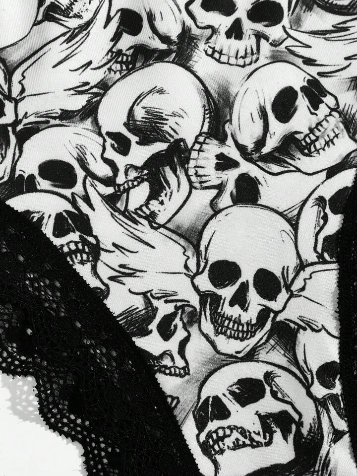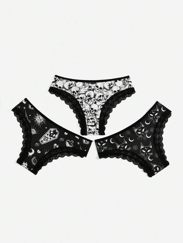 Goth 3 pacchi Brief con grafica cranio pizzo a contrasto