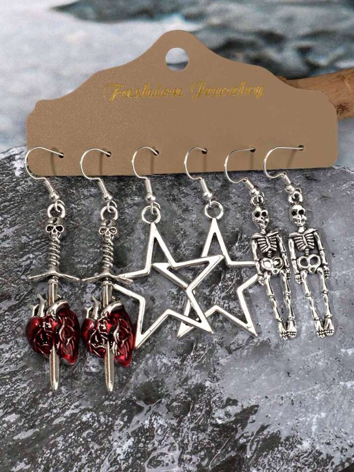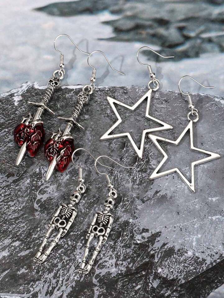 Goth 3 paia/set Orecchini a forma di stella ciondola