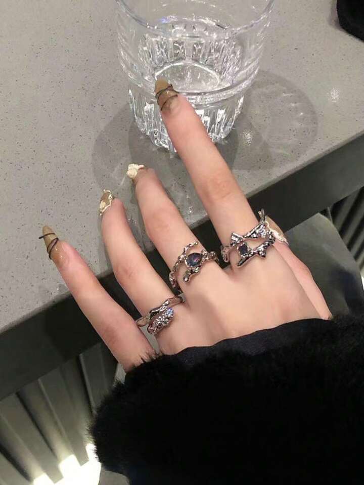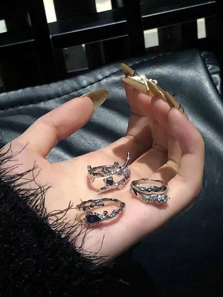 Goth 3 pezzi Anello alla moda lega di zinco con strass per donne per regalo per appuntamenti