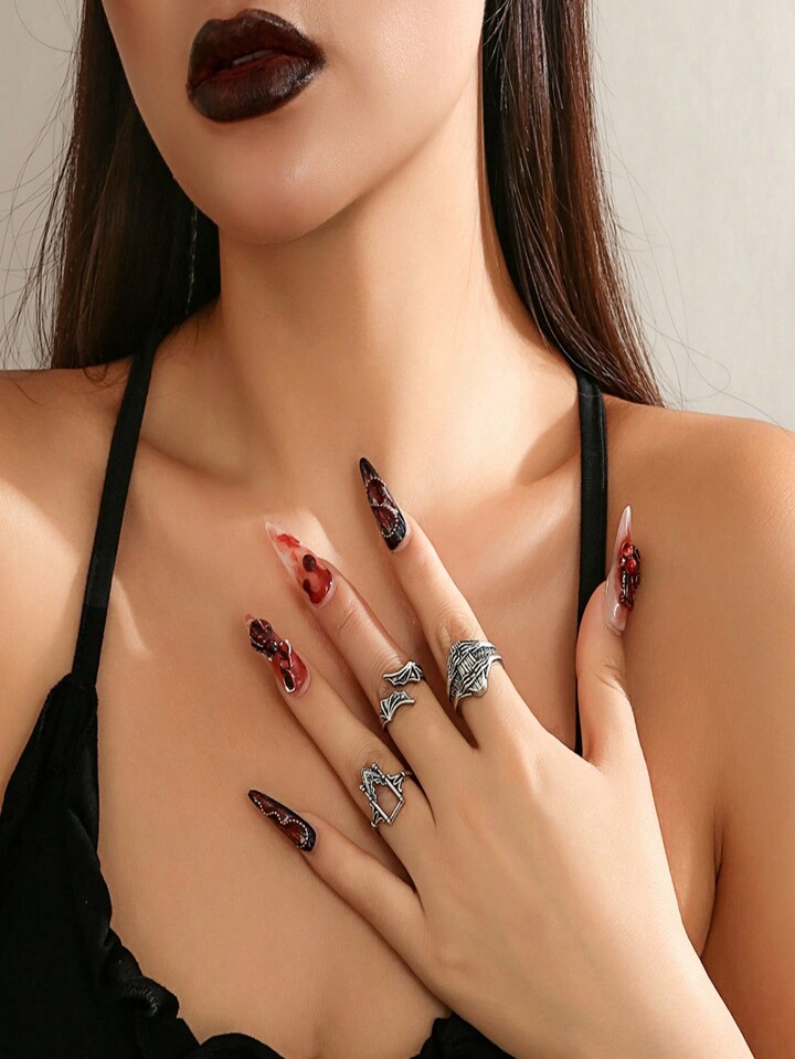 Goth 3 pezzi Anello funky lega di zinco pipistrello ala per donne per decorazione quotidiana