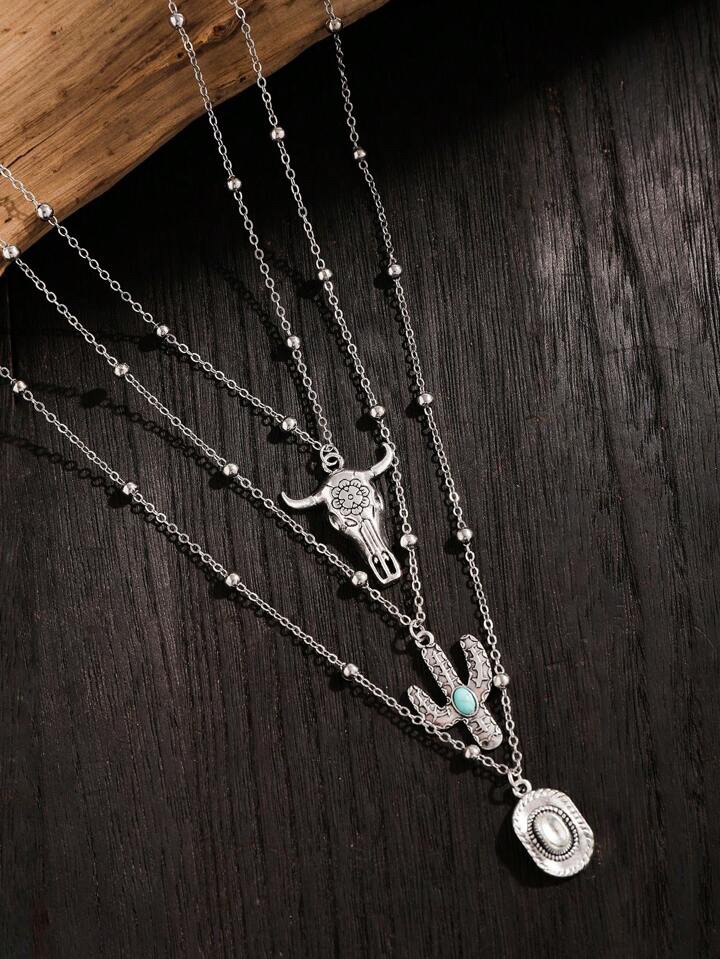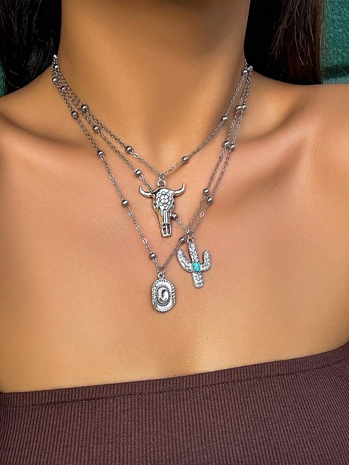 Goth 3 Pezzi/set Cactus Stile Western Alla Moda, Collana Con Ciondolo Cappello Da Cowboy