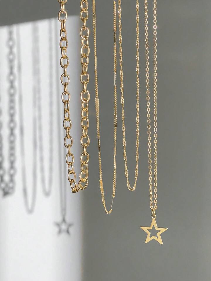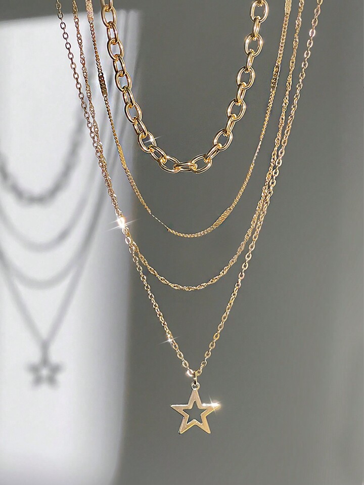 Goth 4 pezzi Set di gioielli collana con pendente a catena stile punk dorato alla moda a forma di stella