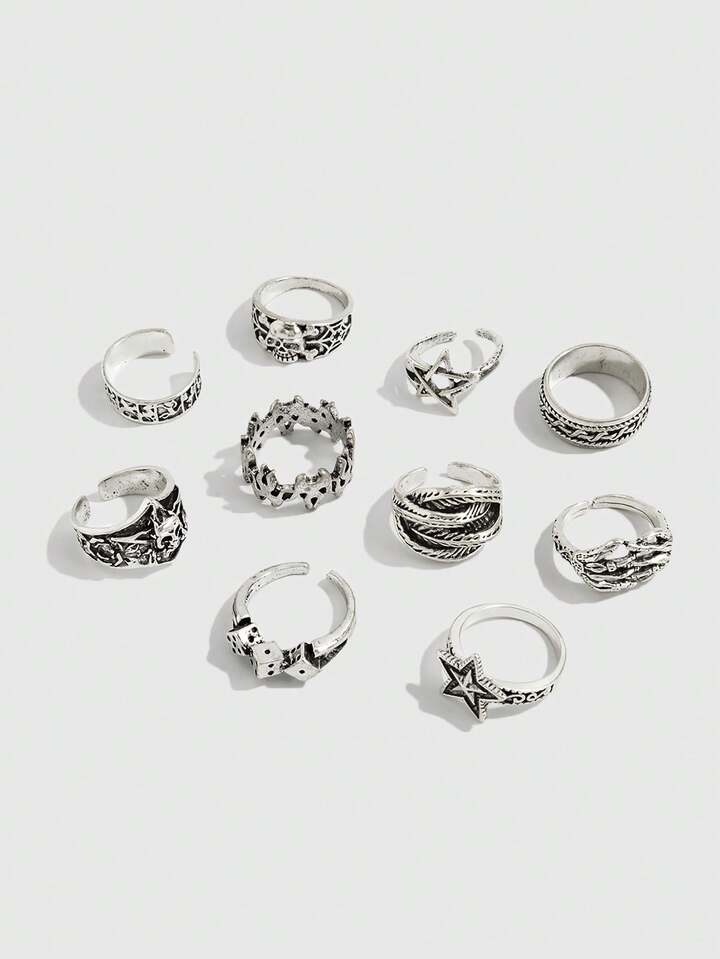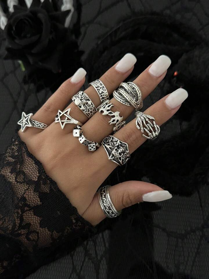Goth Set di 4 anelli a spirale a forma di stella, stile punk, set di anelli regolabili per coppie