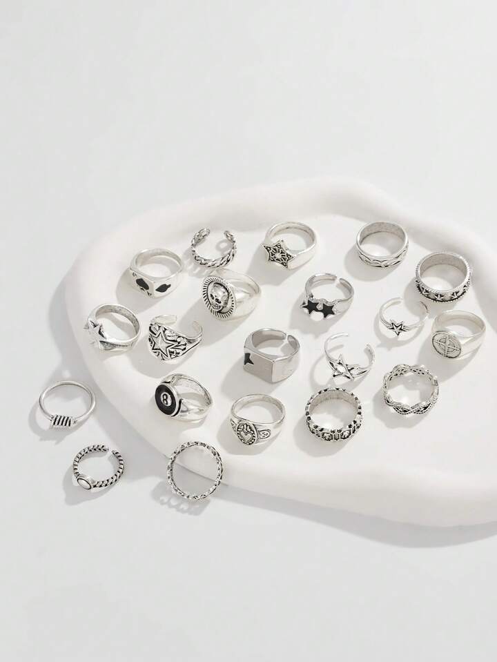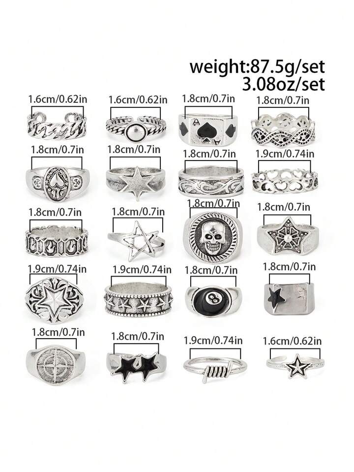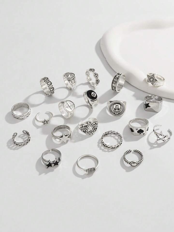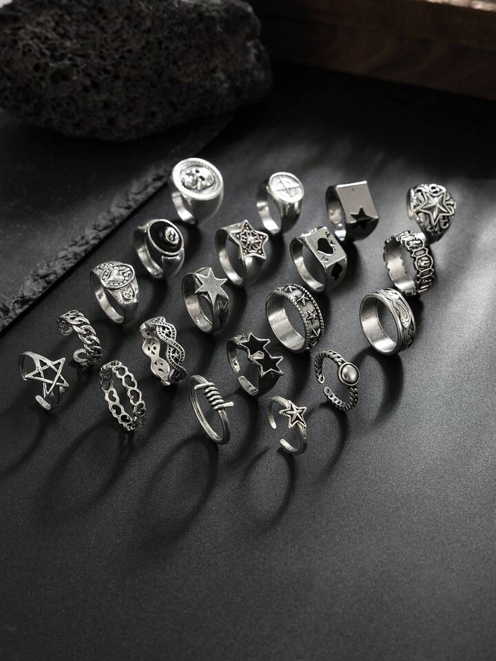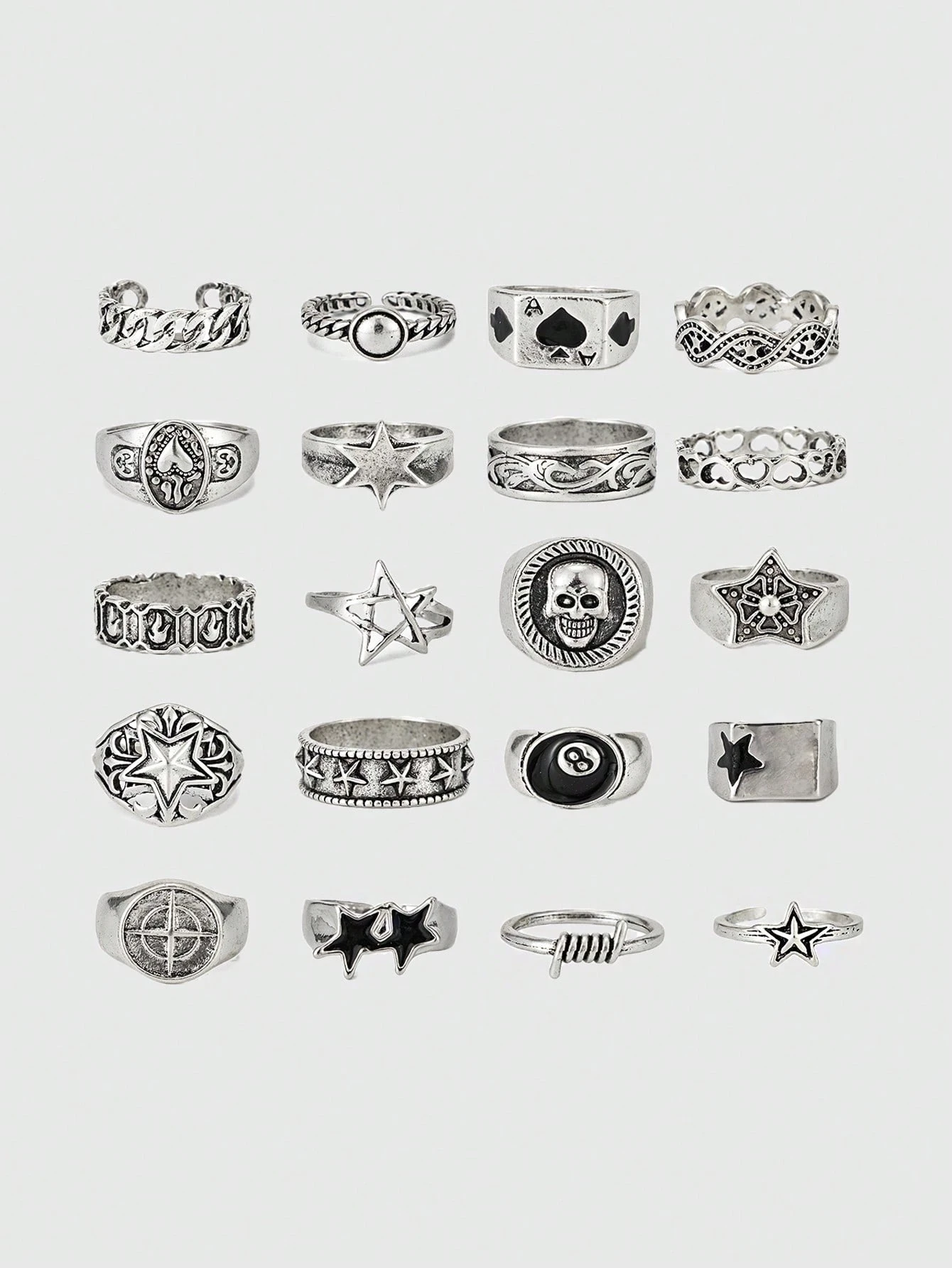 Goth Set di 4 anelli a spirale a forma di stella, stile punk, set di anelli regolabili per coppie