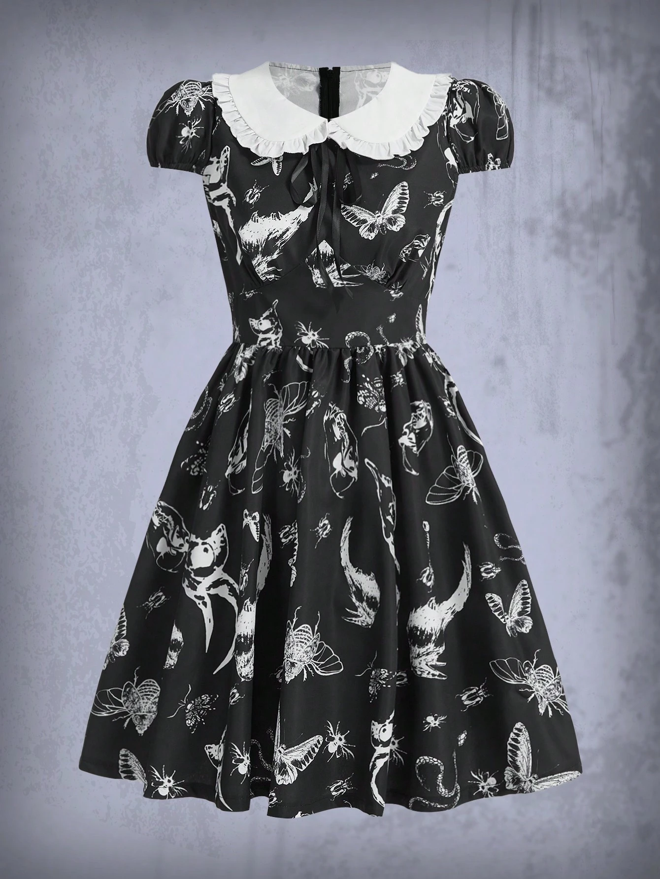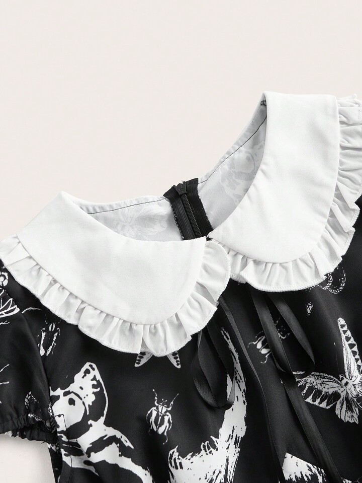 Goth Abiti con stampa animale con volant colletto a contrasto
