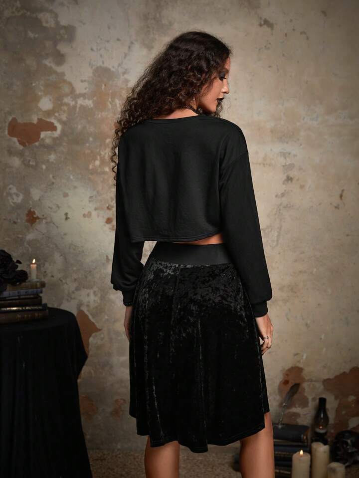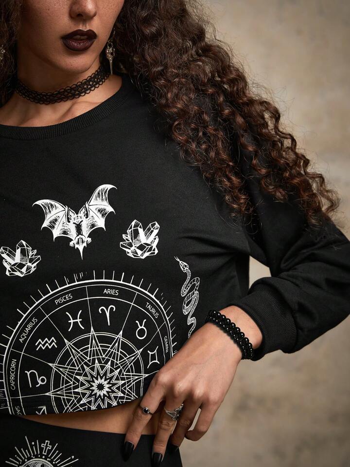Goth Felpa corta pipistrello & con stampa effetto serpente spalle cadenti