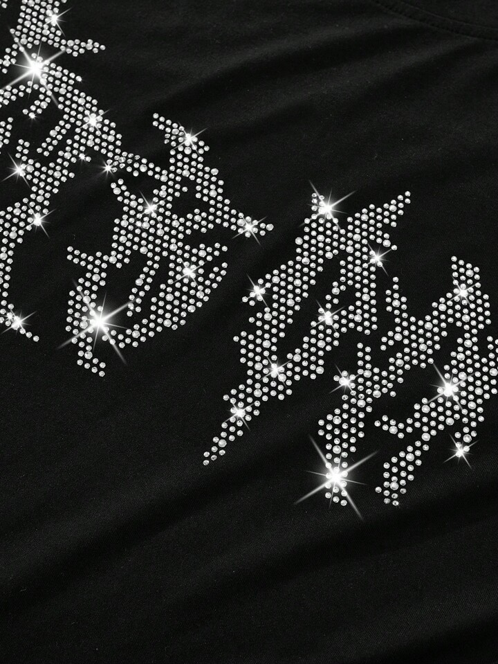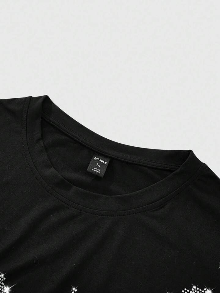 Goth Maglietta casual da uomo con grafica a croce e strass neri
