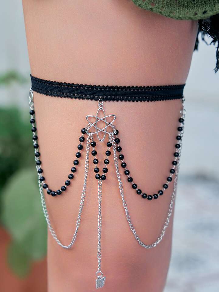 Goth Catena della coscia con ciondolo farfalla stratificato
