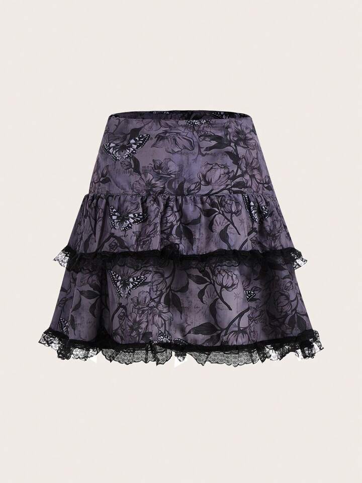 Goth Gonne farfalla e floreale pizzo a contrasto