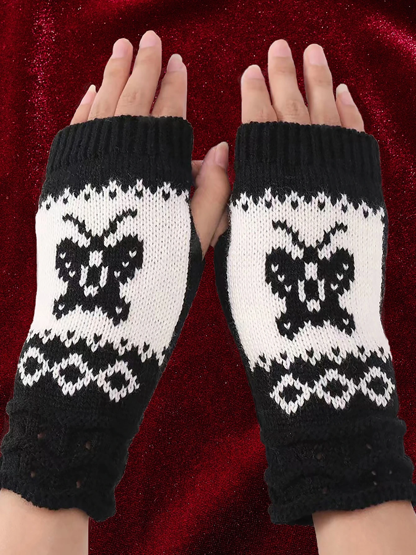 Goth Guanti senza dita con motivo farfalla