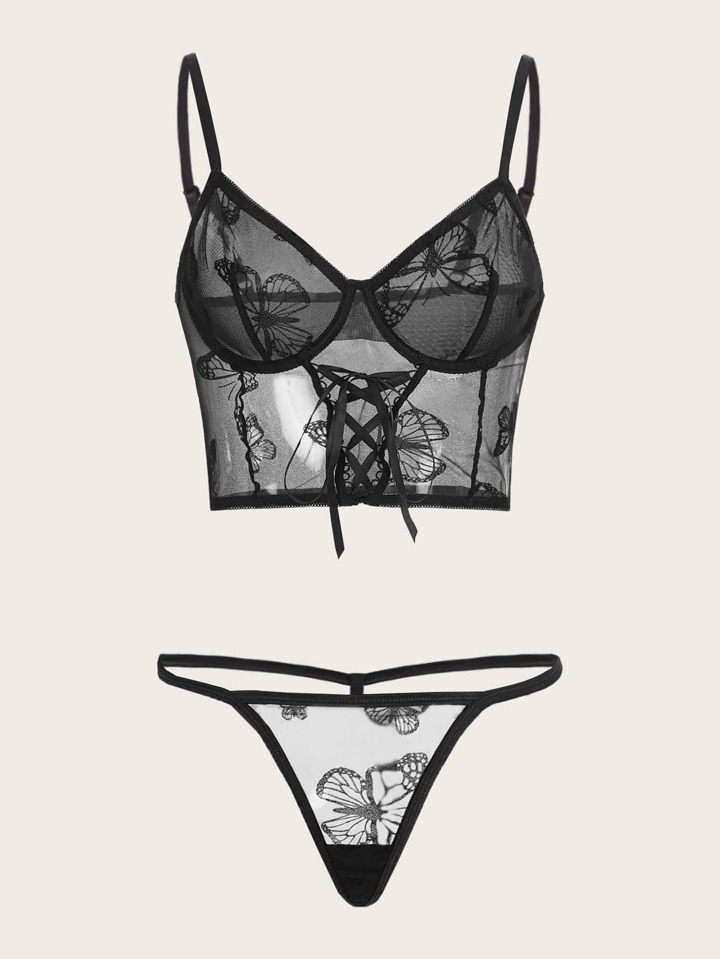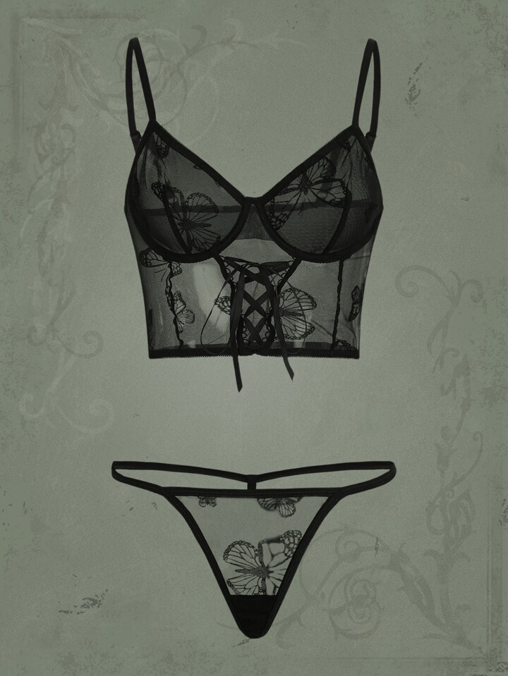 Goth Set lingerie con motivo farfalla tulle con lacci
