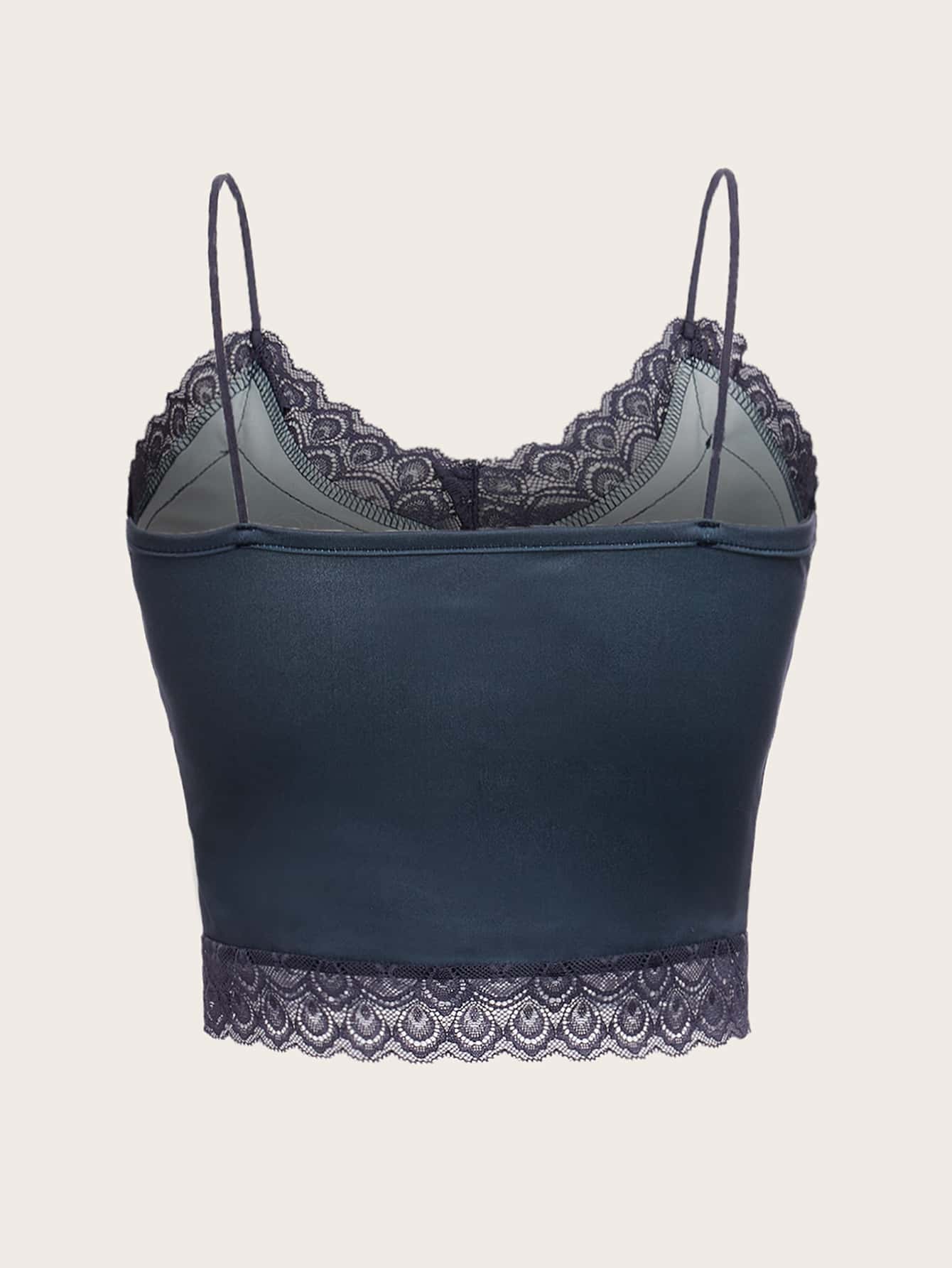 Goth Top con bretelle sottile con stampa farfalla pizzo a contrasto