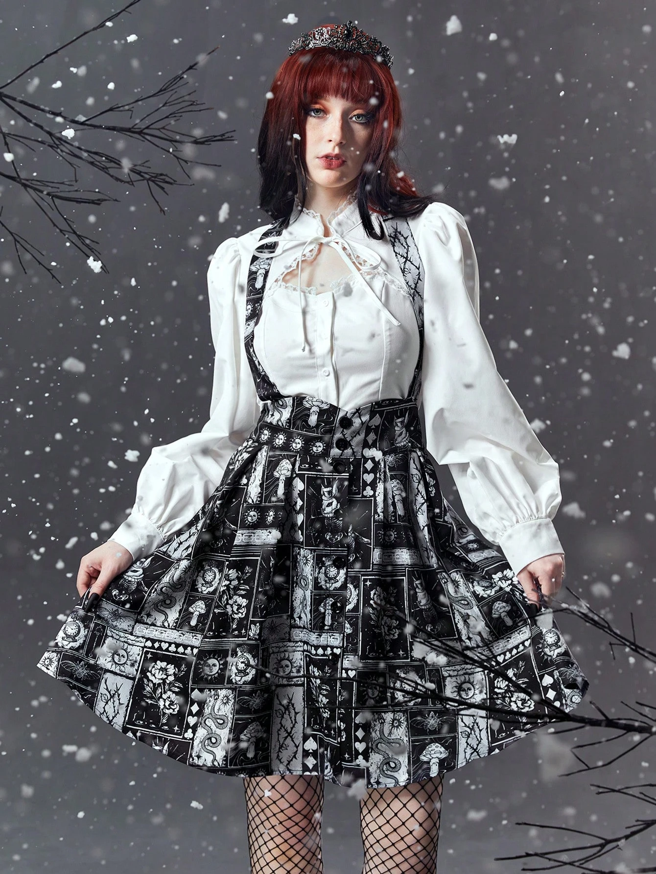 Goth Gonna Scamiciata Con Stampa Di Carte