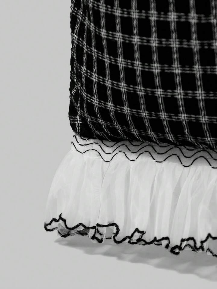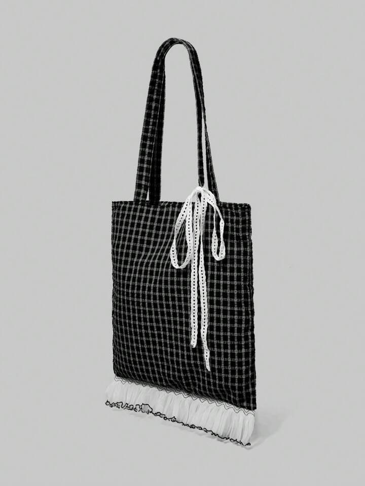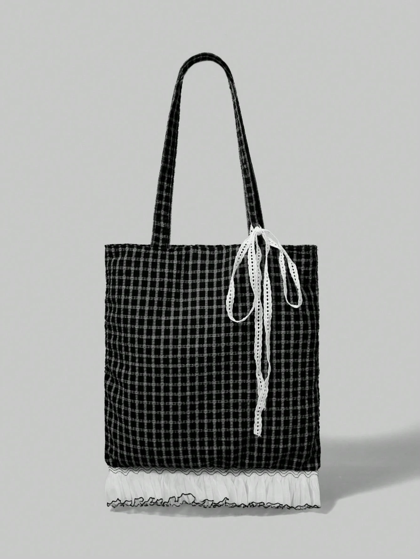 Goth Borsa a tracolla classica bicolore scacchiera con bordo in pizzo, design versatile e dolce per ragazze