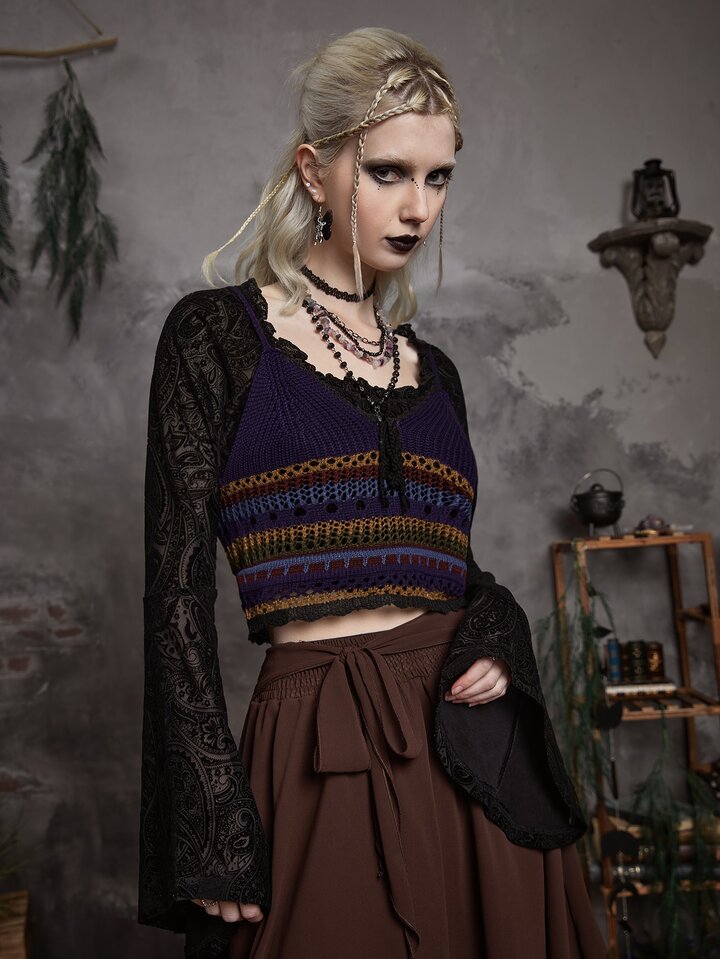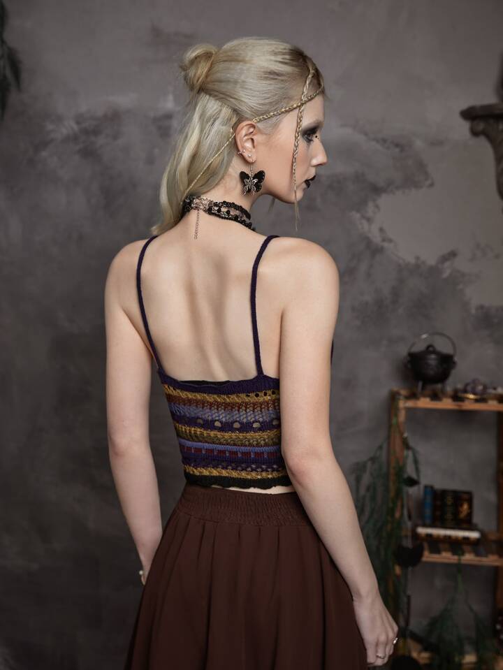 Goth Top a costine con bretelle sottile color block con nodo frontale