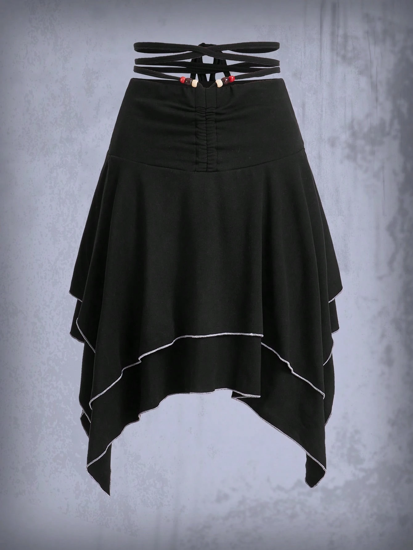 Goth Gonne bordo a contrasto con coulisse a vita orlo asimmetrico