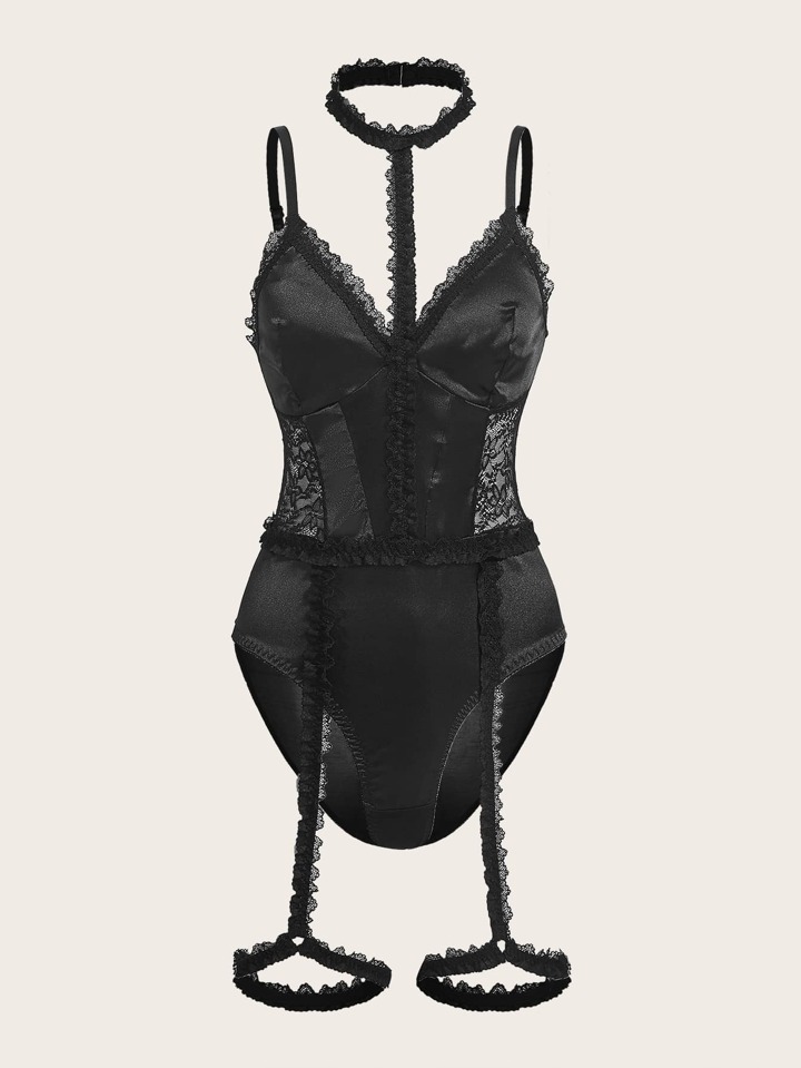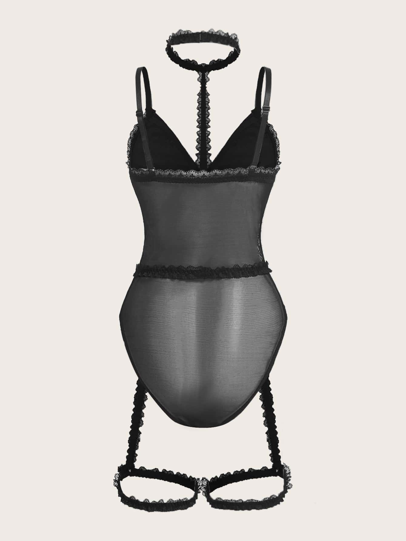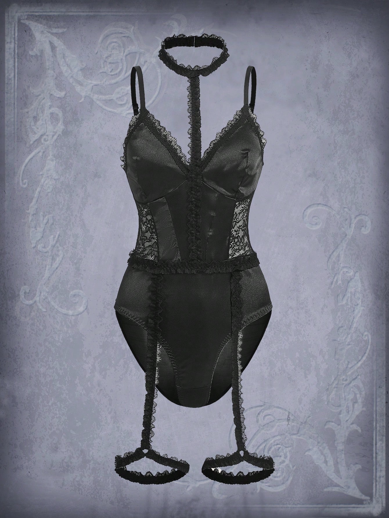 Goth Body teddy pizzo a contrasto giarrettiera con choker