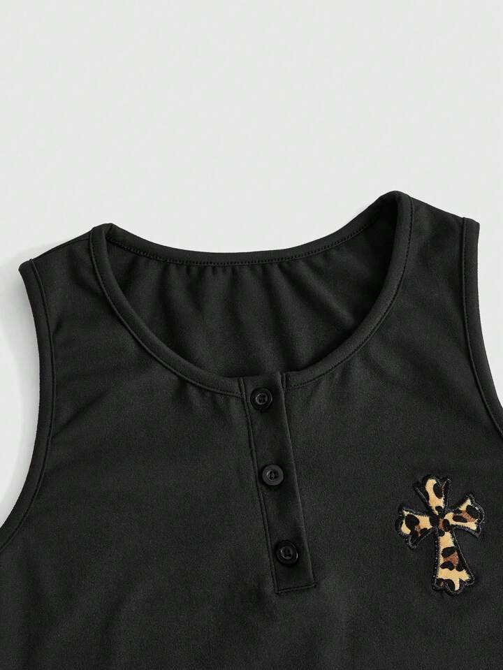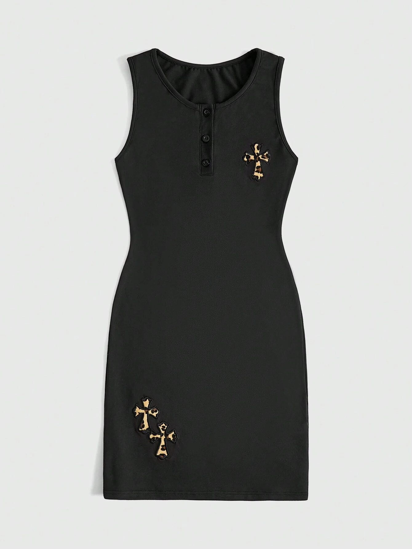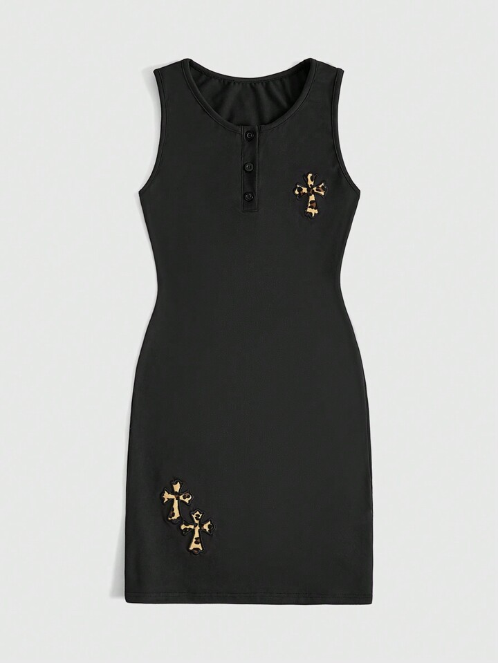 Goth Abito A Trapezio Senza Maniche A Mezza Plancia Abbottonata Con Ricamo A Punto Croce