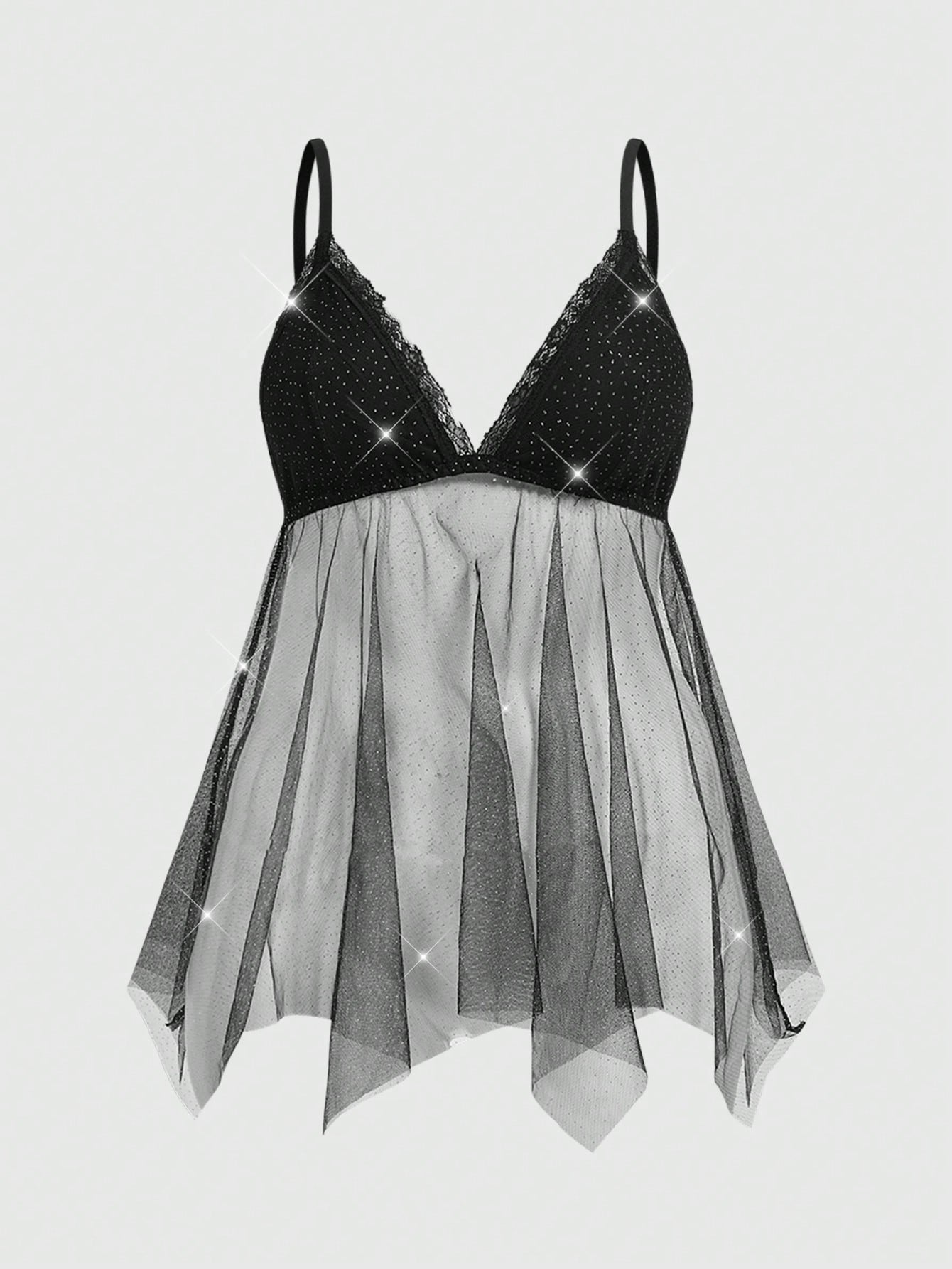 Goth Camicia da notte sexy e affascinante con pizzo e ciglie da bambola