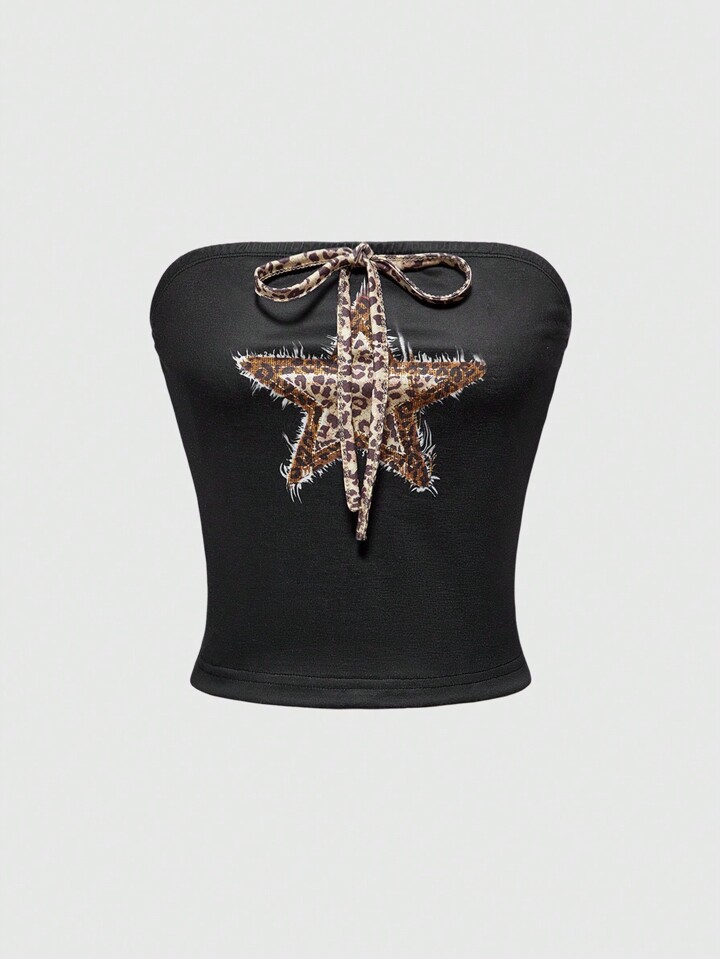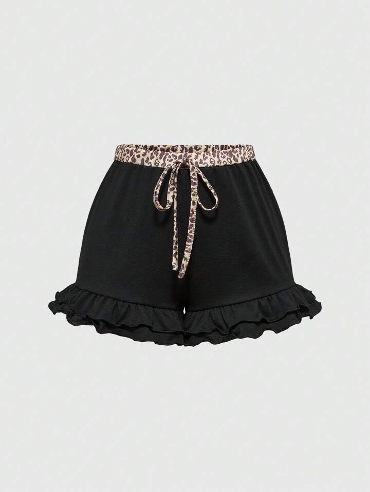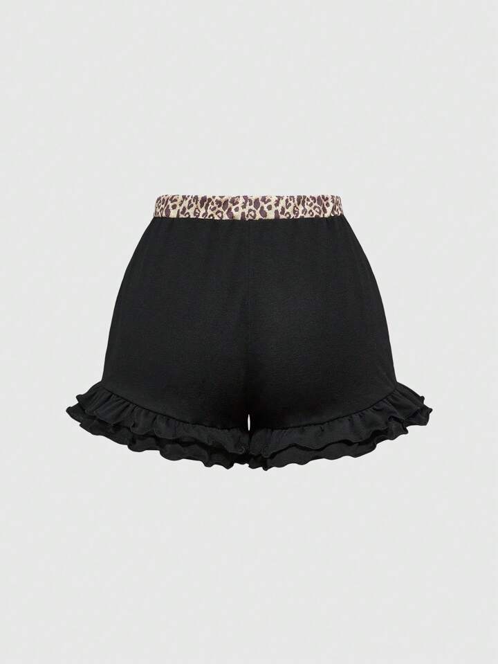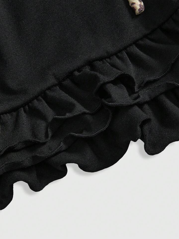 Goth Pigiama con canottiera a balze e pantaloncini stampato in stile leopardato e stellato, con toni scuri e stile punk
