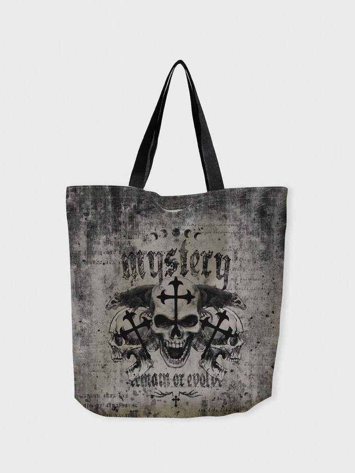 Goth Borsa a tracolla in tela con stampa a doppia faccia raffigurante un teschio scuro