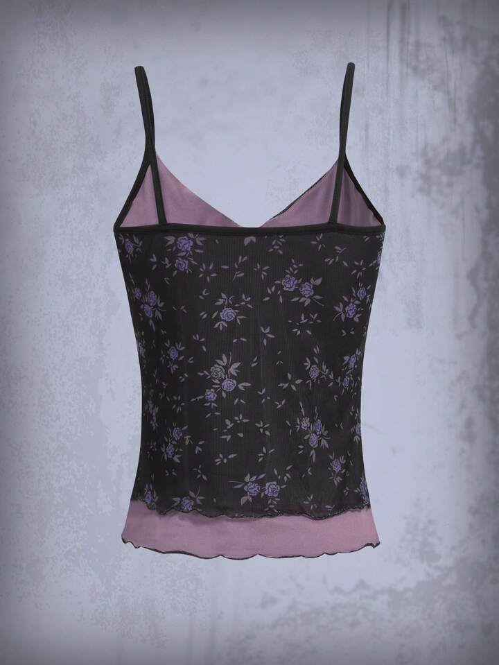 Goth Top bretelle sottile con stampa fiorellini pizzo a contrasto