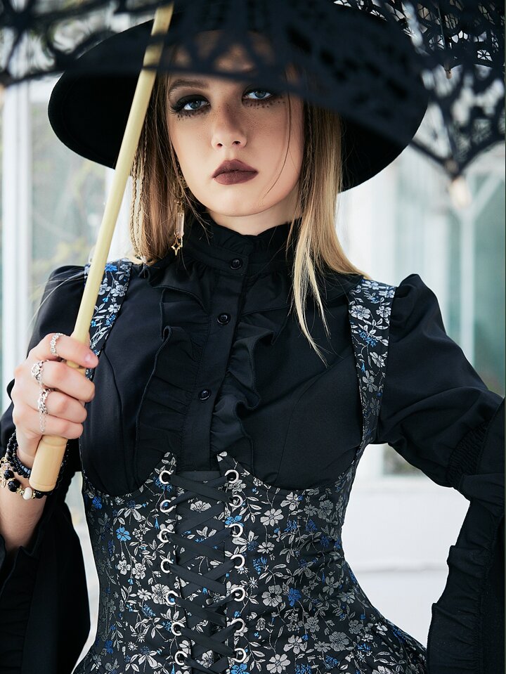 Goth Abito con bretelle sottile con stampa fiorellini orlo a strati