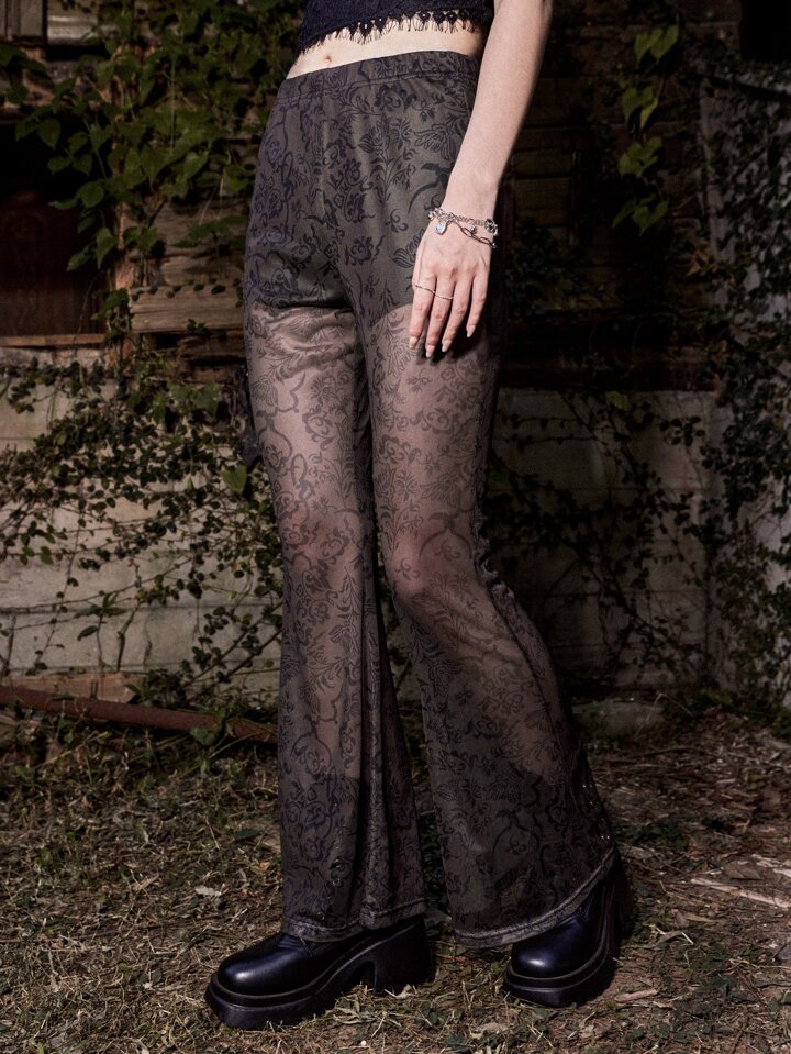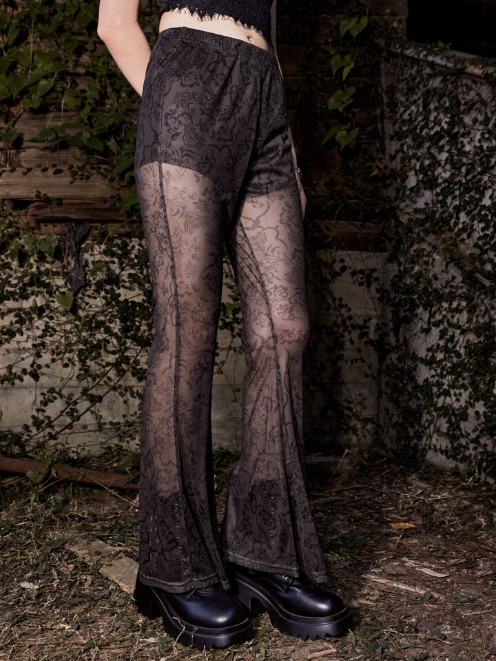 Goth Pantaloni con stampa floreale trasparente
