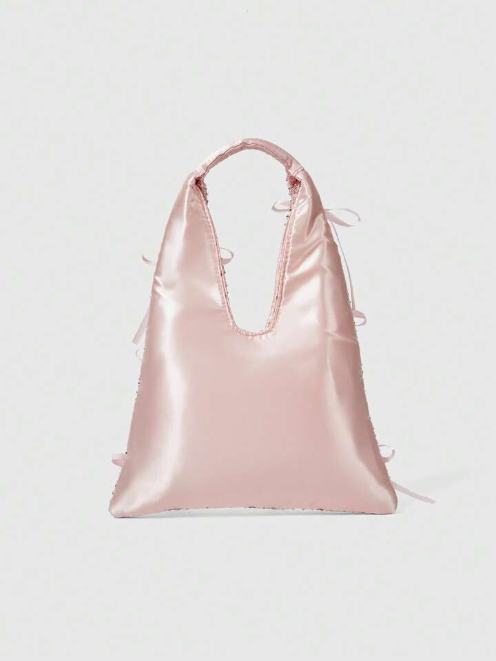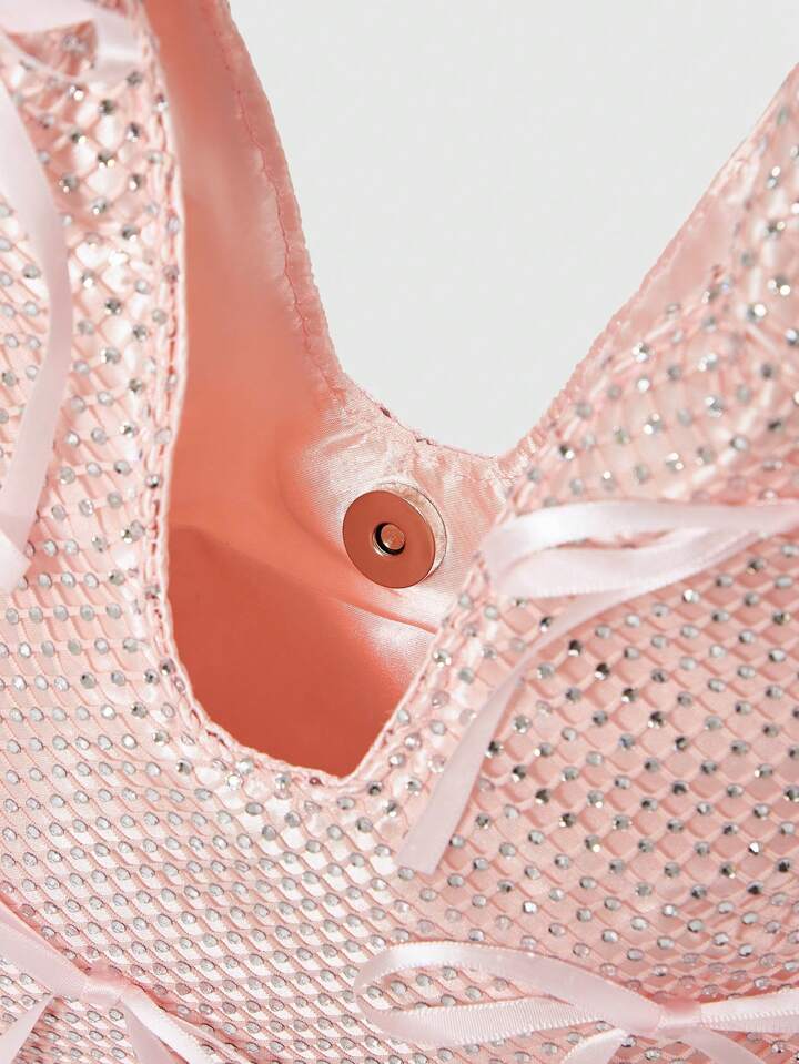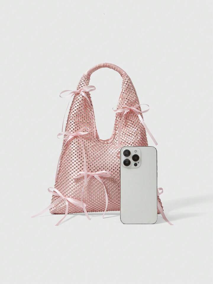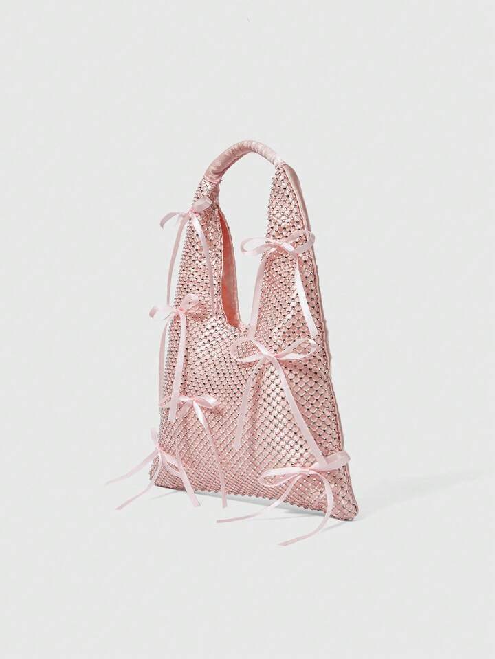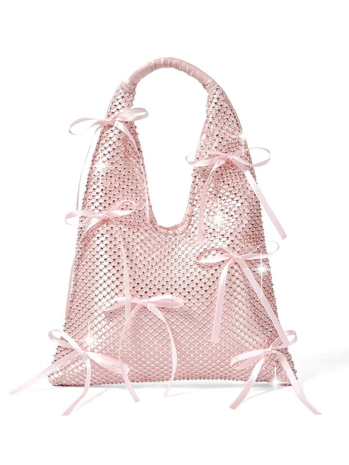 Goth Borsa da donna casual con manico superiore rosa, con fiocco soffice, in stile Y2K