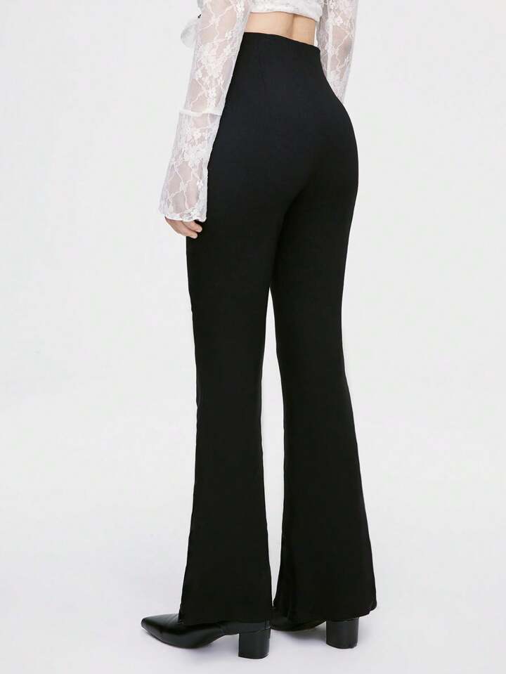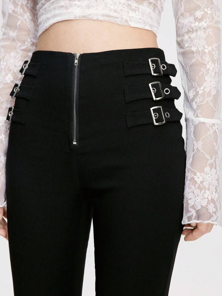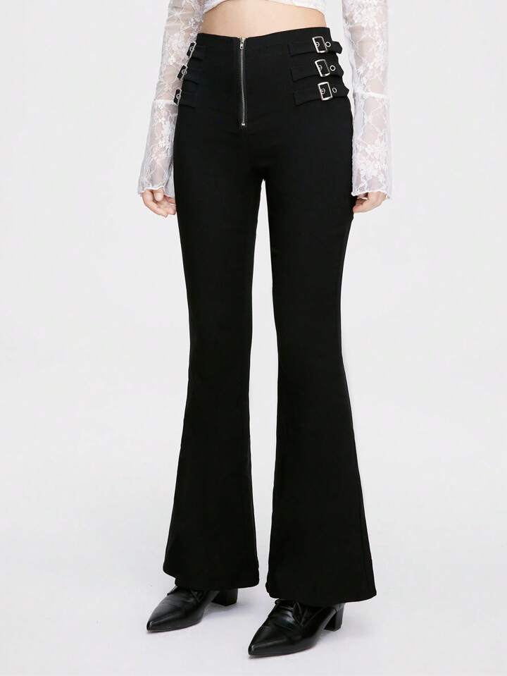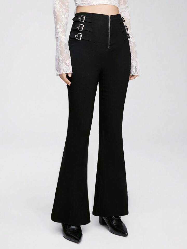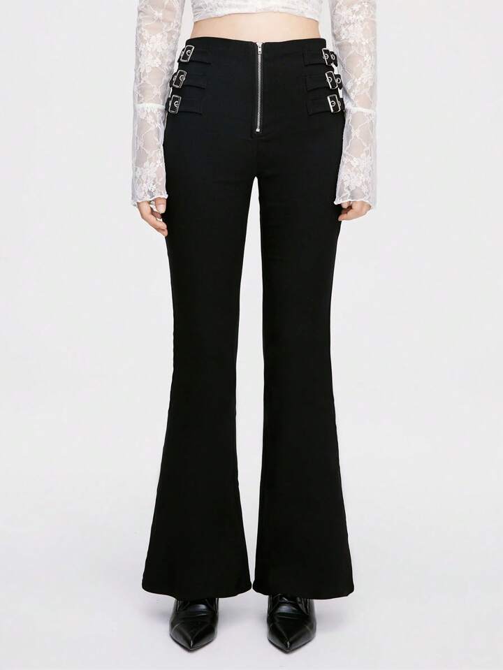 Goth Pantaloni a zampa da donna a vita bassa in stile gotico punk con cintura a fibbia in metallo sul lato