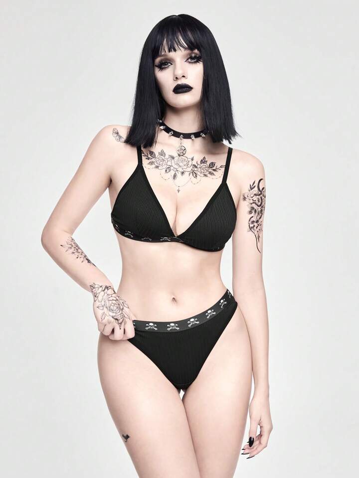 Goth Set di reggiseno senza fili in maglia testurizzata con scheletro gotico per donne