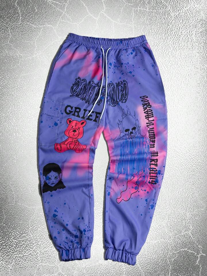 Goth ragazzi Pantaloni con grafica di cartoni e lettere con coulisse