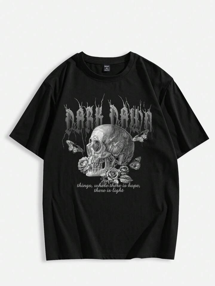 Goth Ragazzi Maglietta cotone con grafica cranio