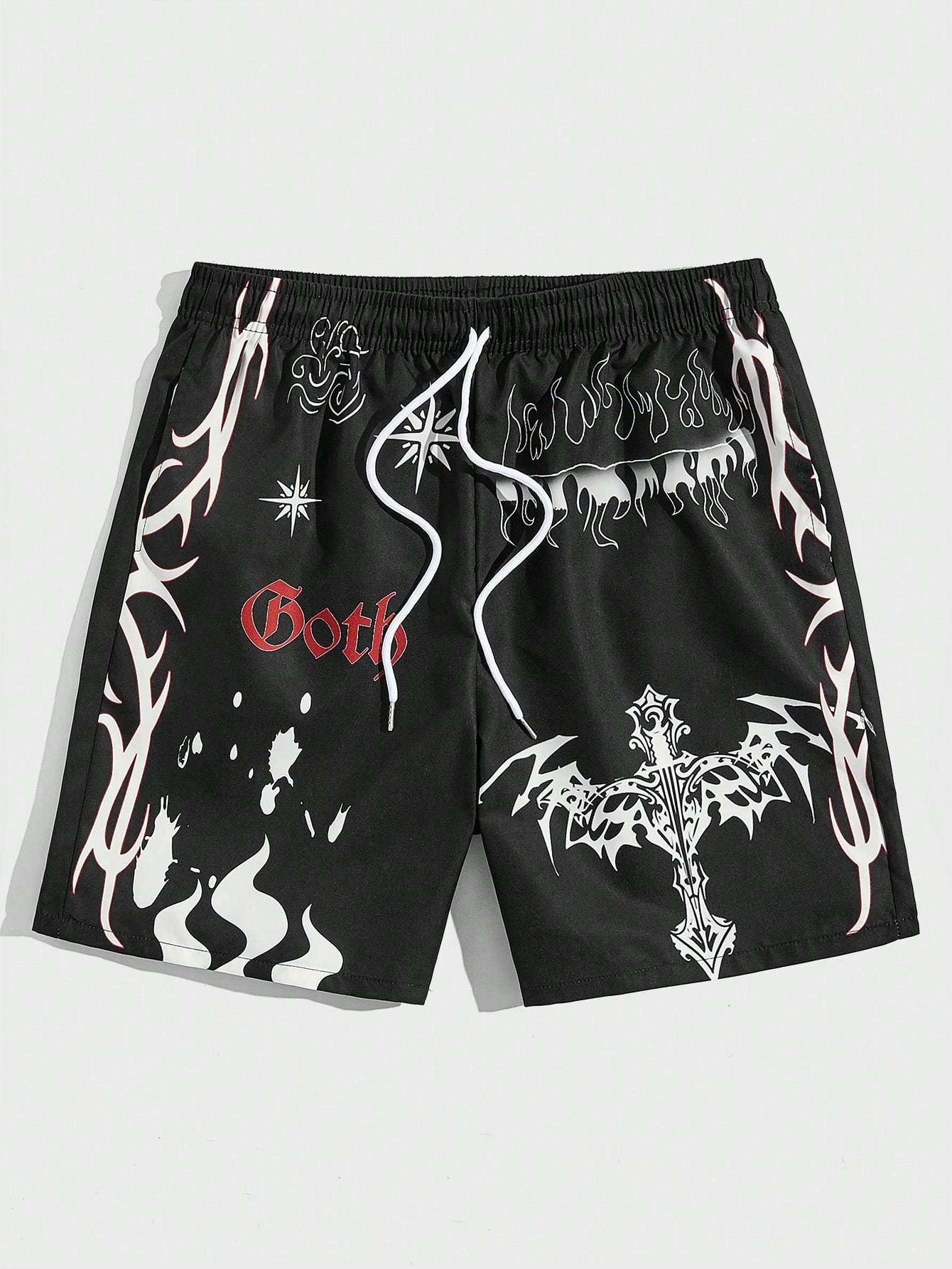 Goth Ragazzi Shorts con grafica fuoco e lettere con coulisse a vita