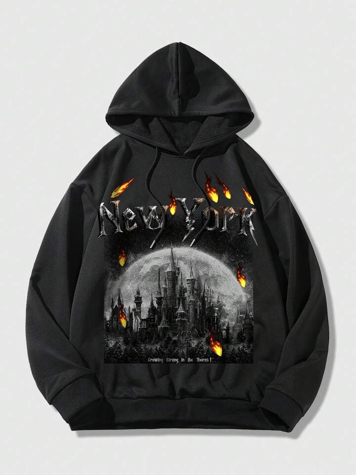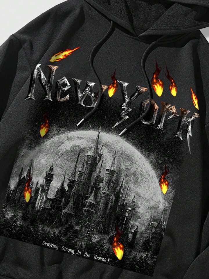 Goth Ragazzi Felpa con cappuccio con grafica lettera con coulisse