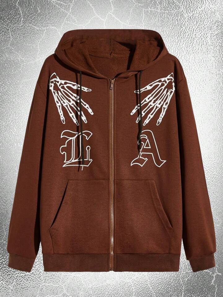 Goth ragazzi Felpa con cappuccio e zip lettere con grafica scheletro