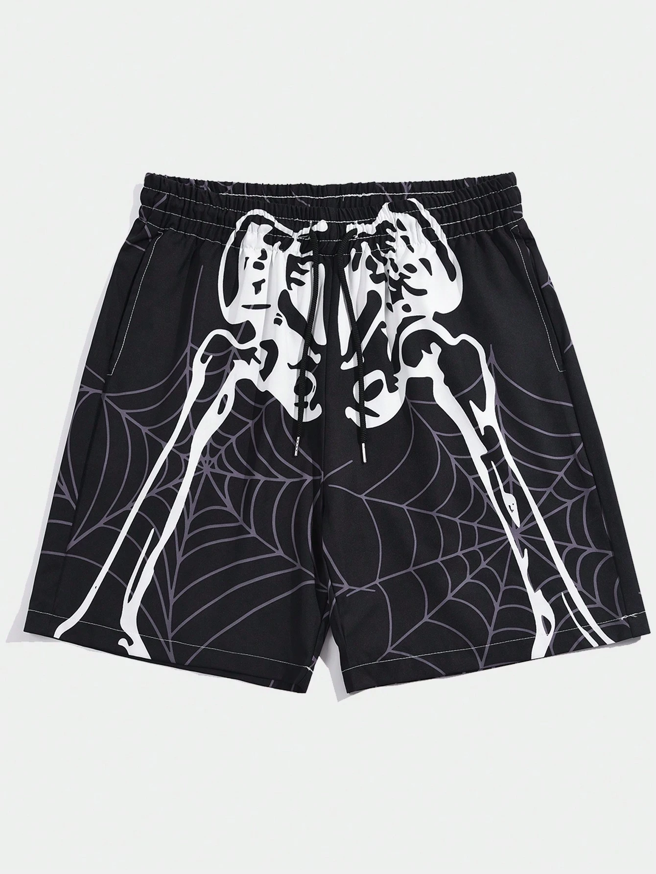 Goth Ragazzi Shorts con stampa scheletri con coulisse a vita